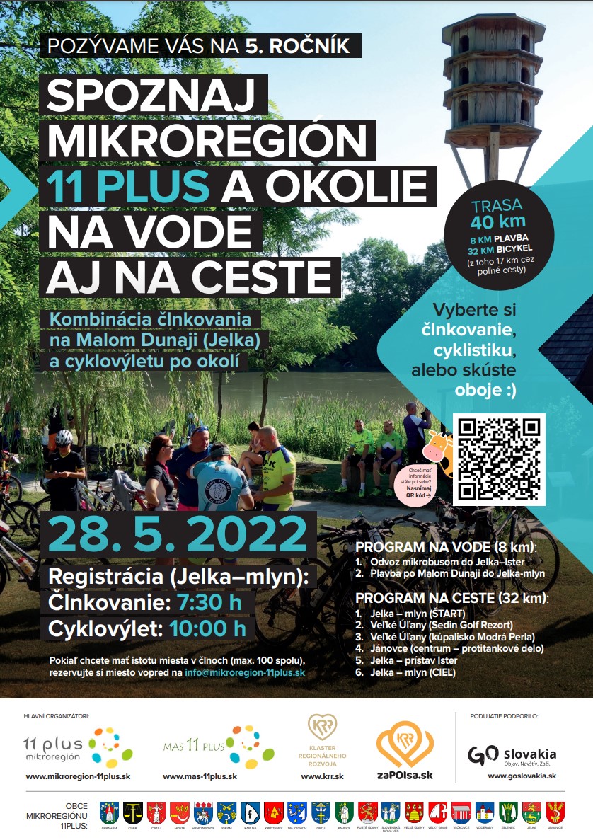 Mikroregión 11 PLUS a Klaster regionálneho rozvoja Vás srdečne pozývajú na zaujímavé podujatie – kombináciu člnkovania na Malom Dunaja (v Jelke) s následným objavovaním Mikroregiónu 11 PLUS na bicykli. Podujatie je organizované vo formáte zaPOIsa.sk